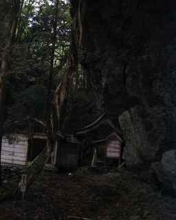 磐境内部 写真では判別しにくいが左側の壁には祠が右手には入口があります。 |